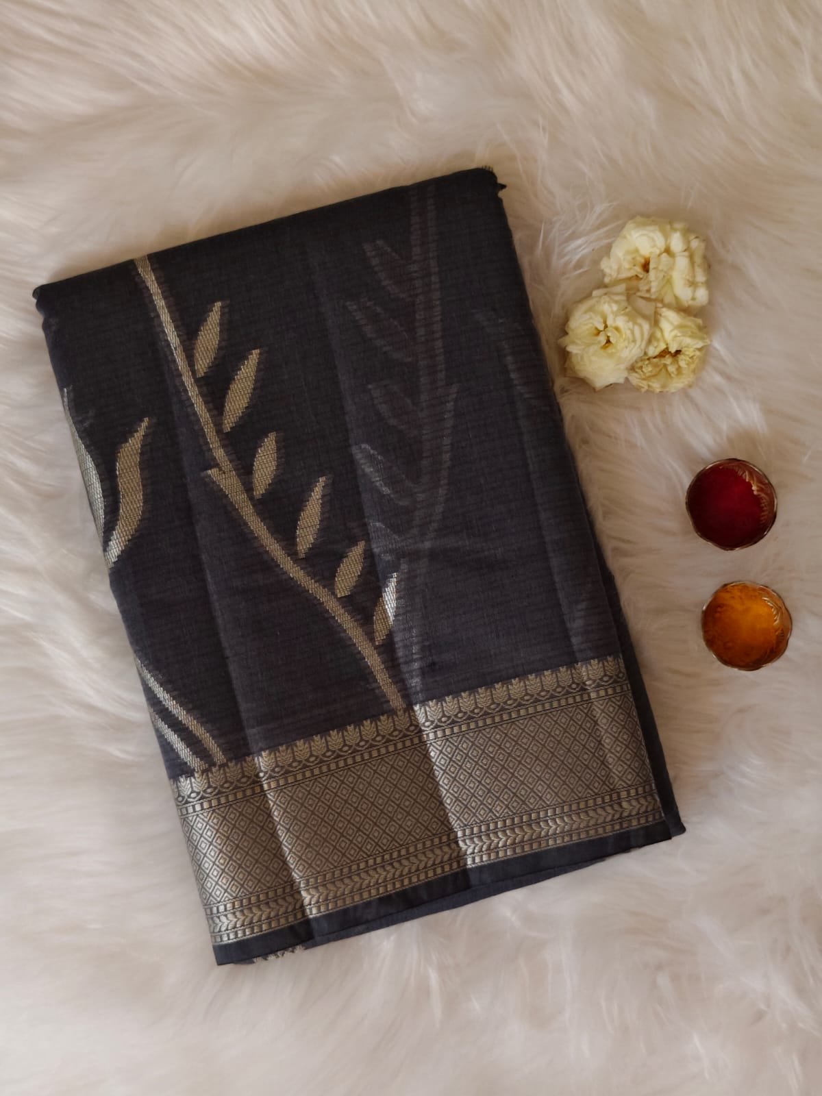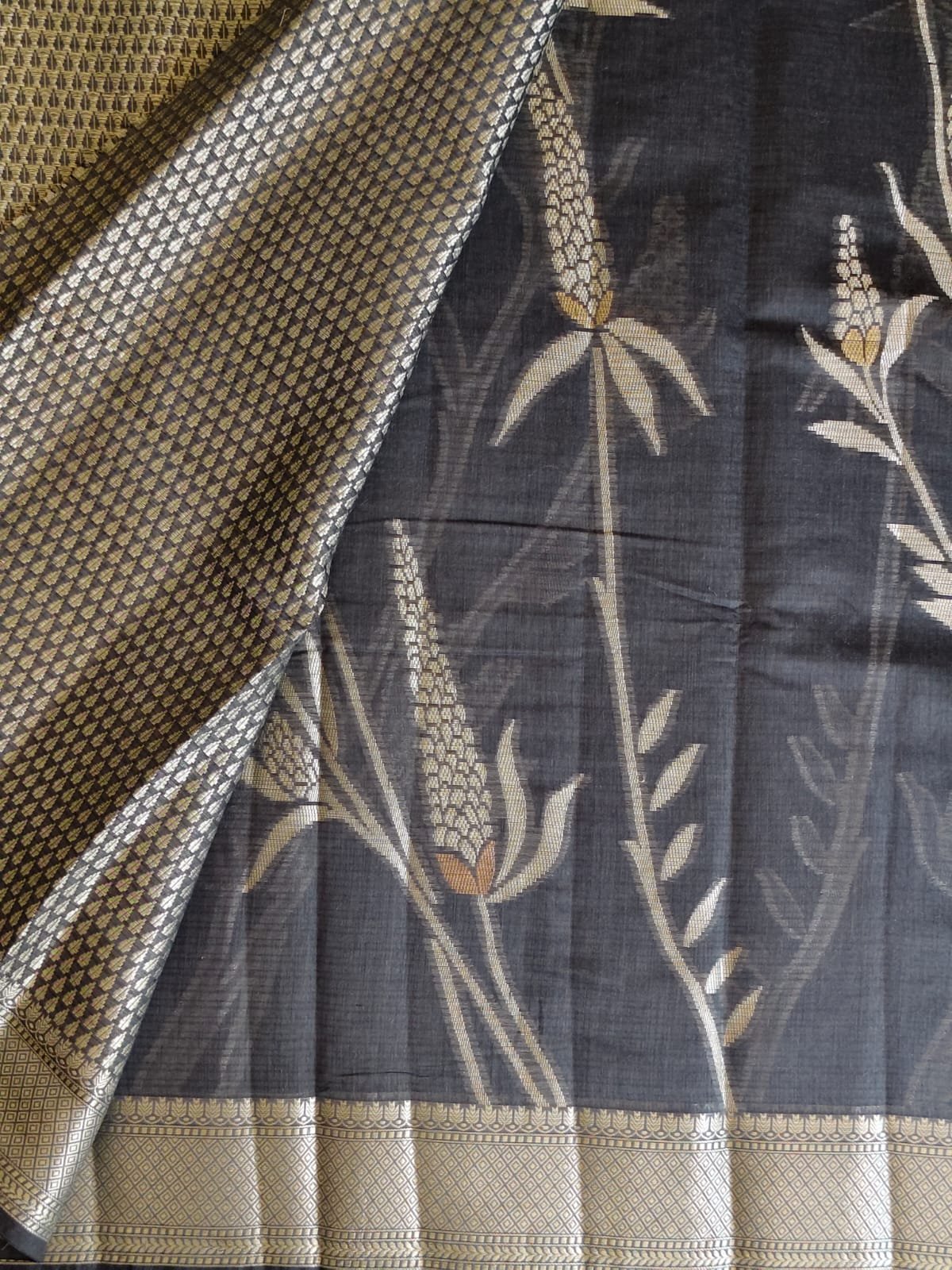 Border: Silver zari woven border