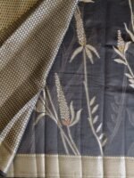 Make a refined style statement with this elegant Kota silk saree, beautifully crafted for women who appreciate subtle luxury. Featuring a rich dark olive / coffee brown base, the saree is adorned with delicate silver zari floral and wheat-inspired motifs, adding a graceful, nature-inspired charm to the drape.