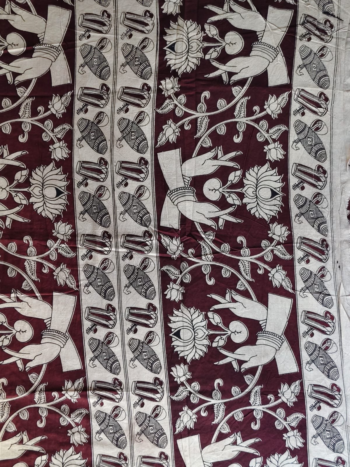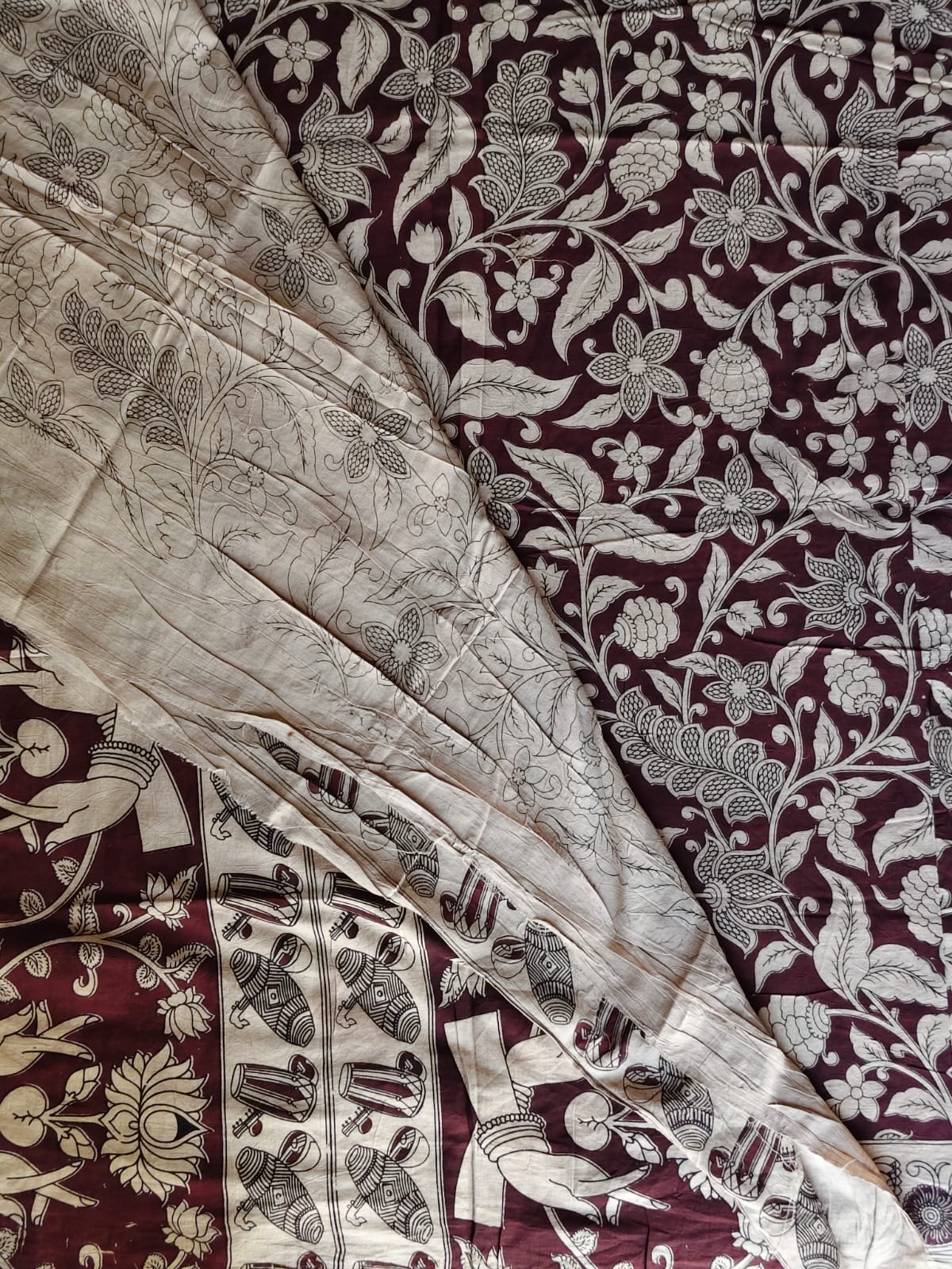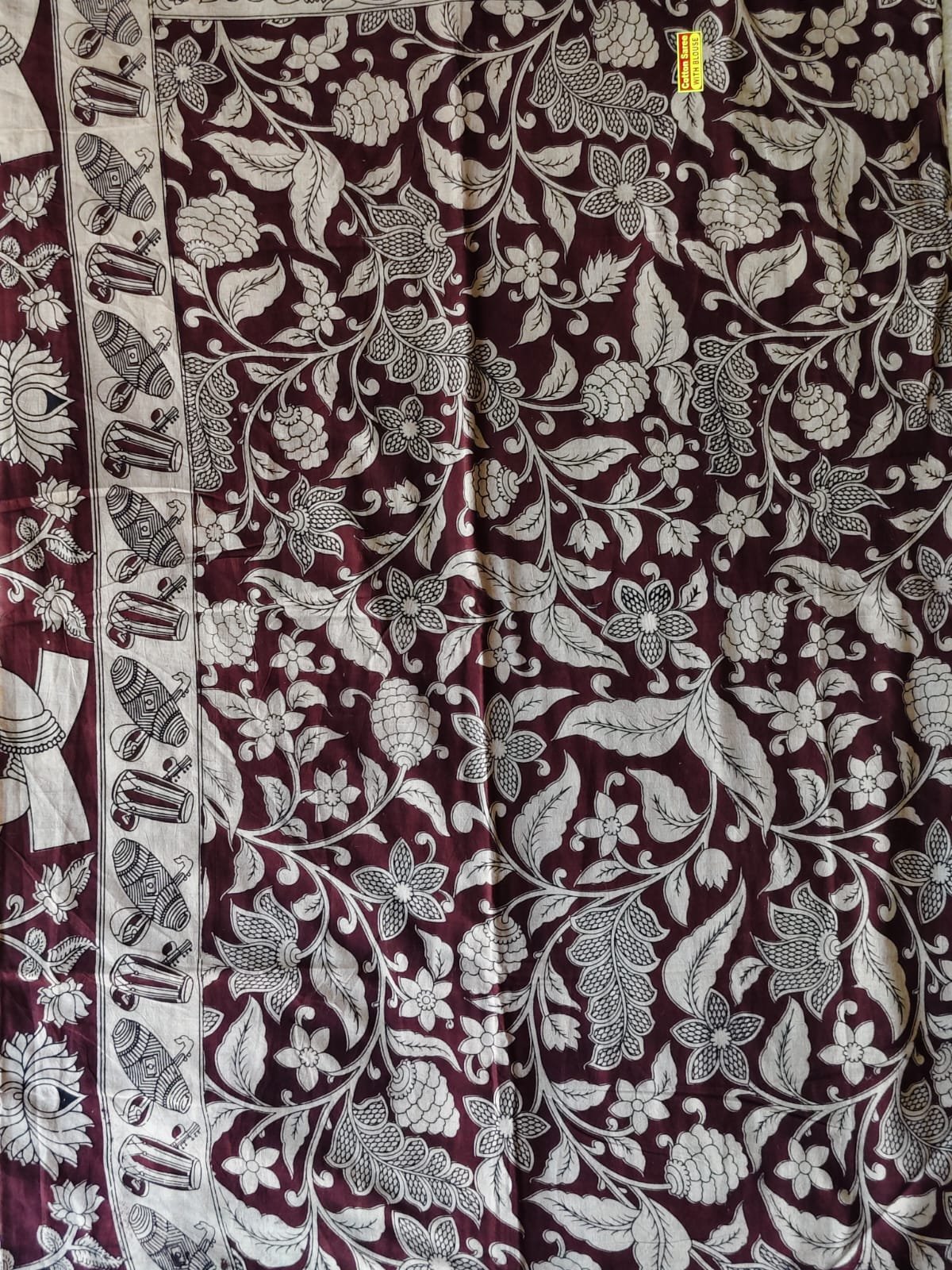 AA1019Maroon Kalamkari Printed Saree with Traditional Border & Floral Design
