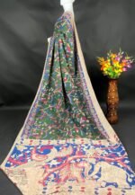Celebrate timeless artistry with this stunning Kalamkari saree, designed for women who appreciate heritage craftsmanship with a contemporary touch. The rich deep green base is beautifully adorned with intricate floral and vine motifs in vibrant shades of blue, pink, and beige, creating a graceful and eye-catching look.