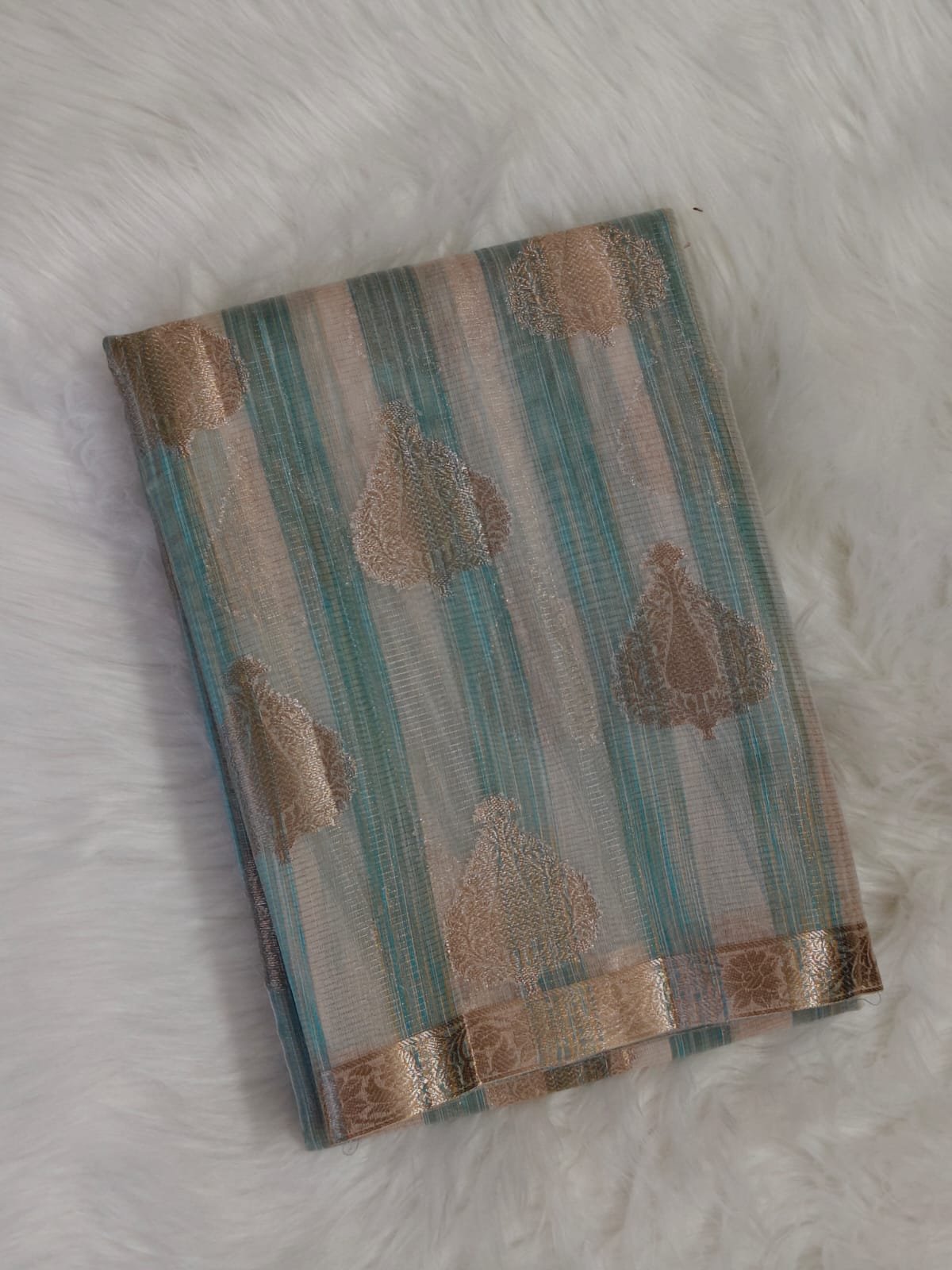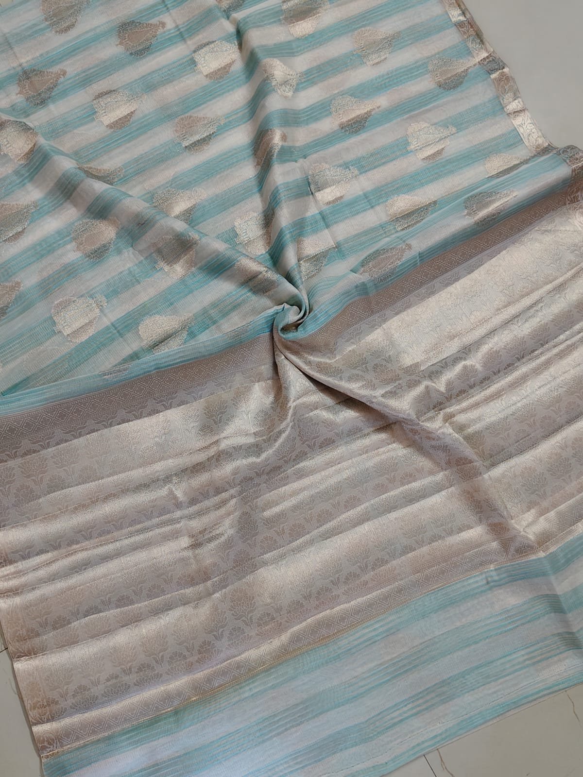 Color: Sky Blue & Cream with Gold Zari