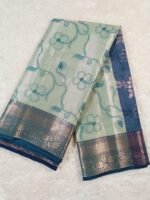 • Color: Light Green body with Contrast Navy Blue Border & Pallu