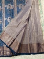 • Pallu: Rich navy blue pallu with luxurious zari lotus motifs