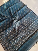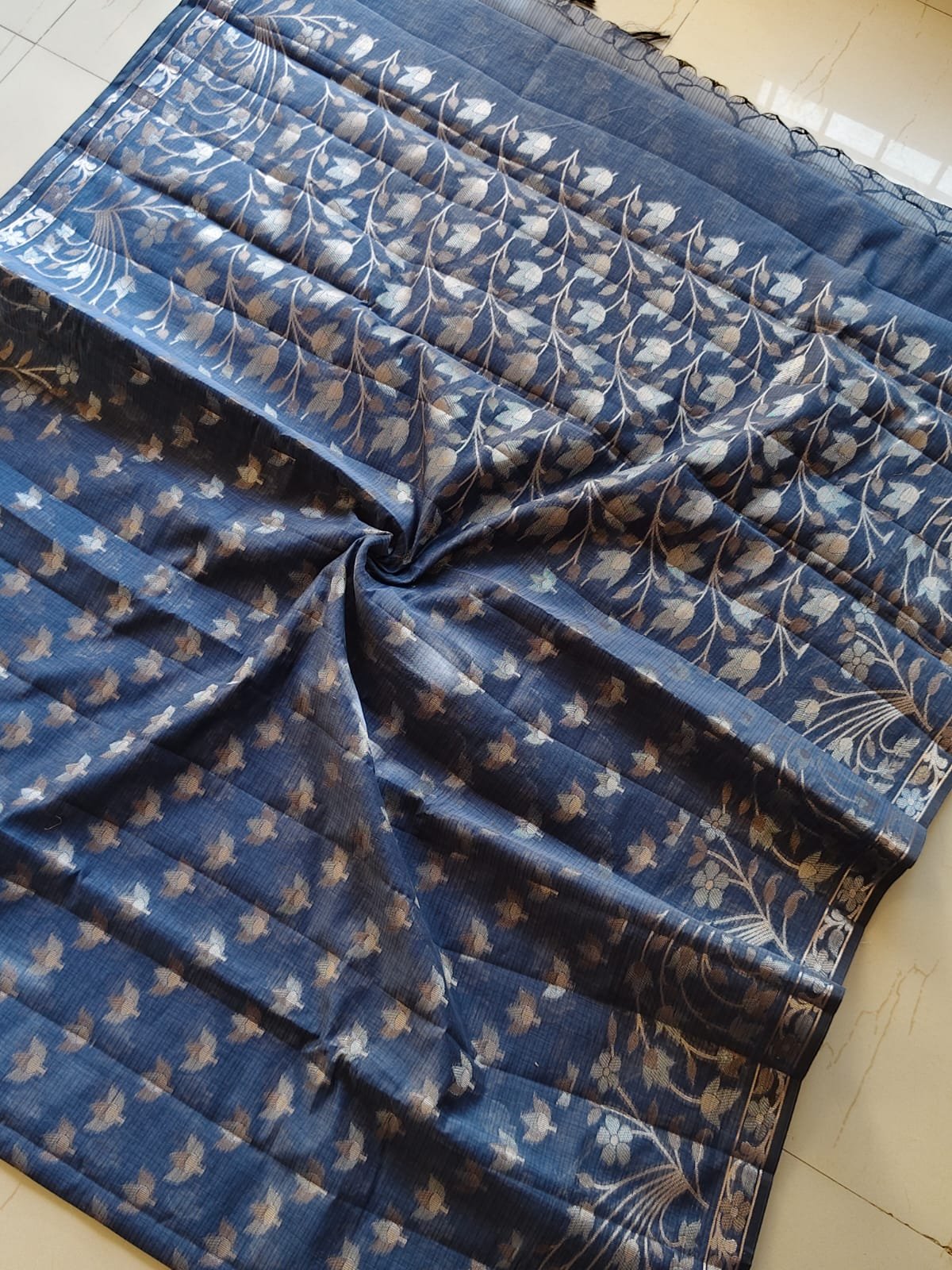 Grace your collection with this elegant Kota Doria saree in a soothing teal blue shade. Designed with delicate all-over woven motifs, this saree highlights a beautifully detailed floral pallu and intricate border that add a refined traditional touch. The lightweight and airy texture ensures comfort while maintaining a graceful drape, making it ideal for everyday elegance as well as festive occasions.