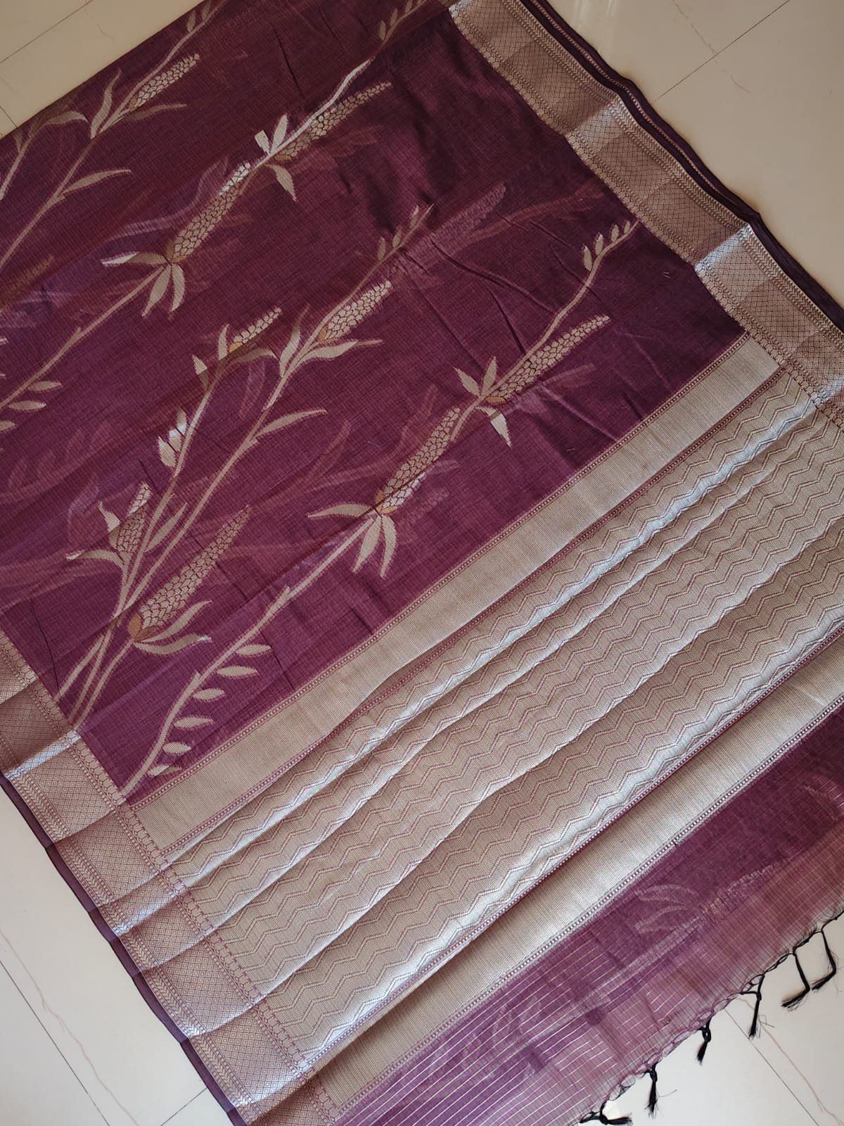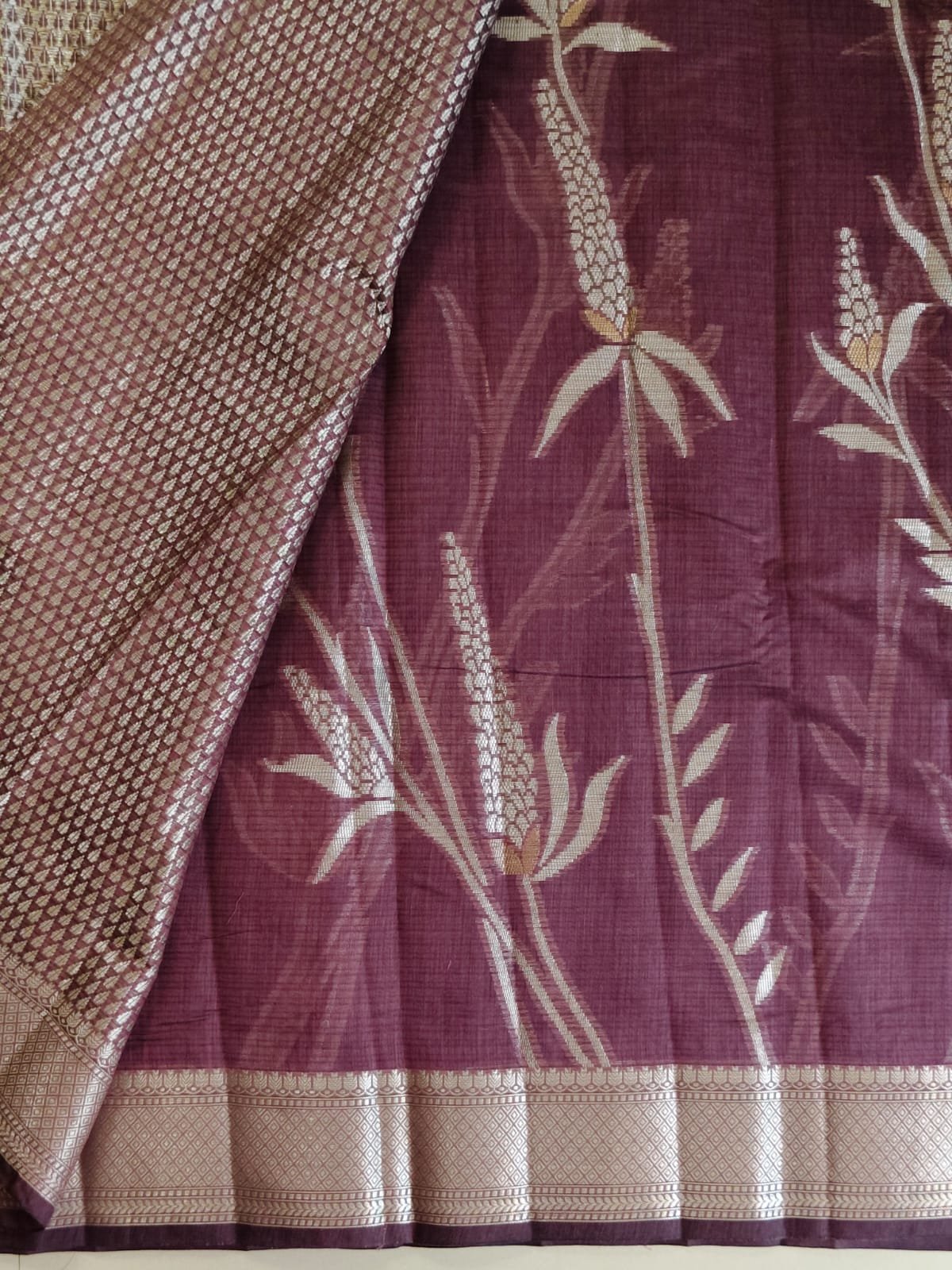 Border: Silver zari woven border