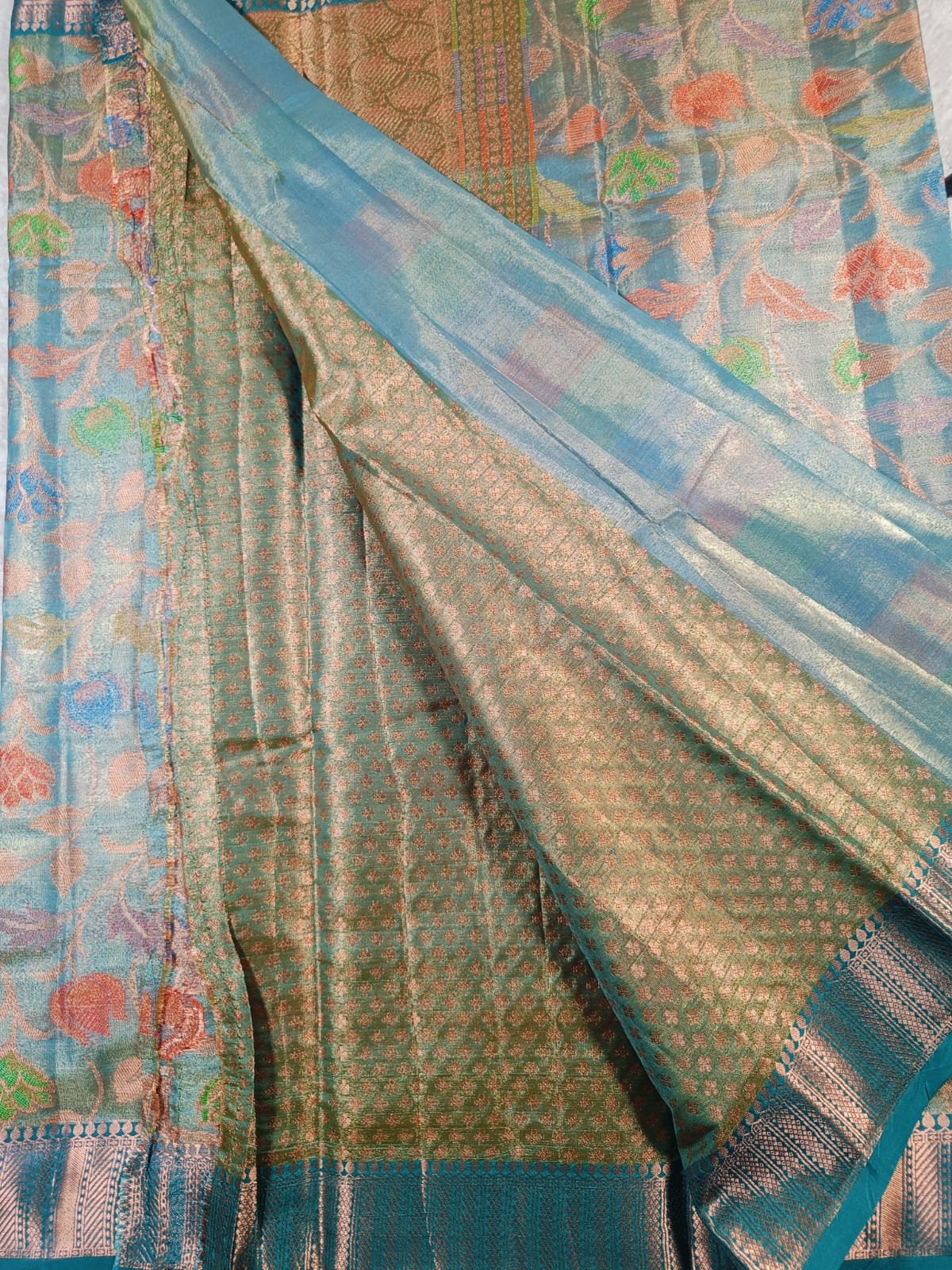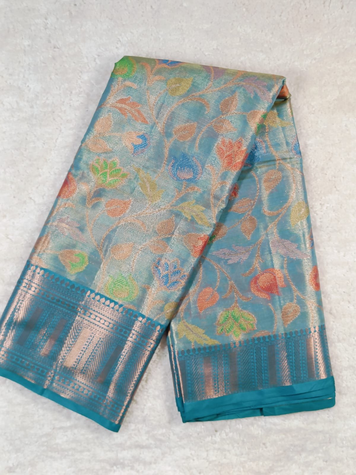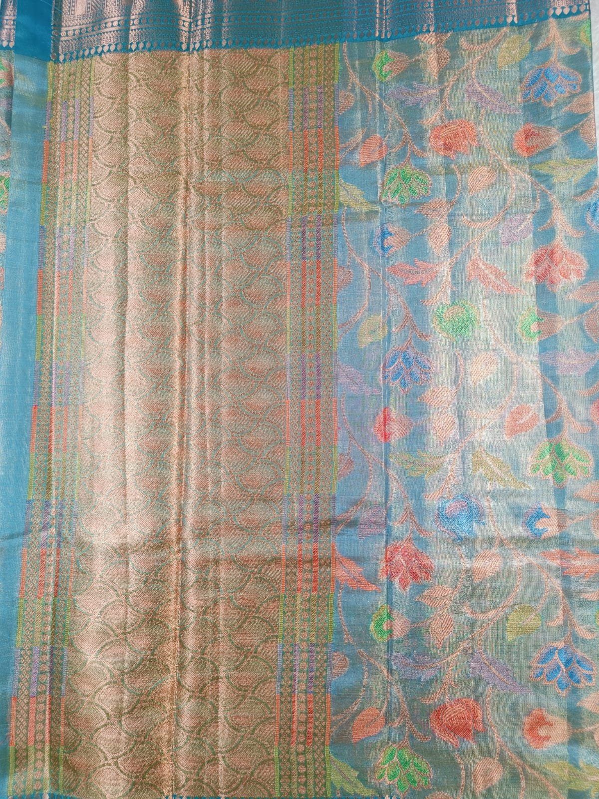 • Design: Multicolor floral zari weaving all over the saree