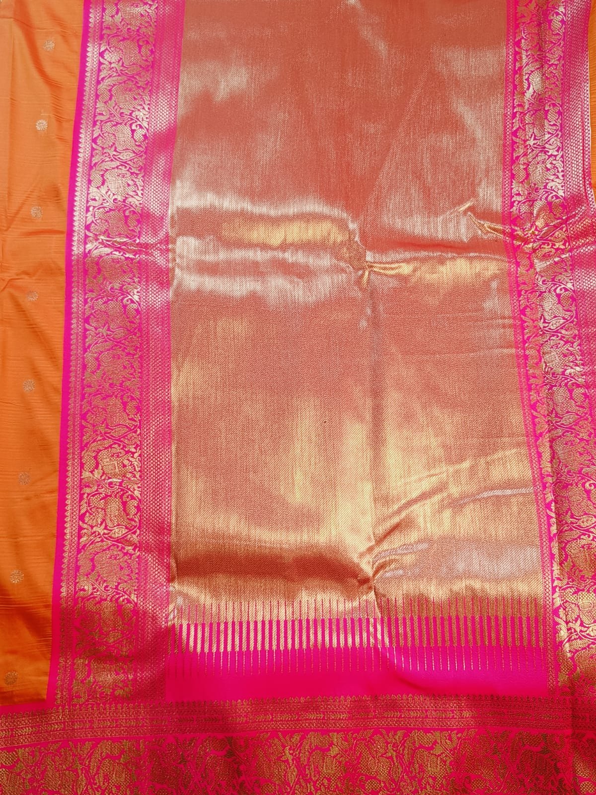 Border: vibrant golden pallu and pink border