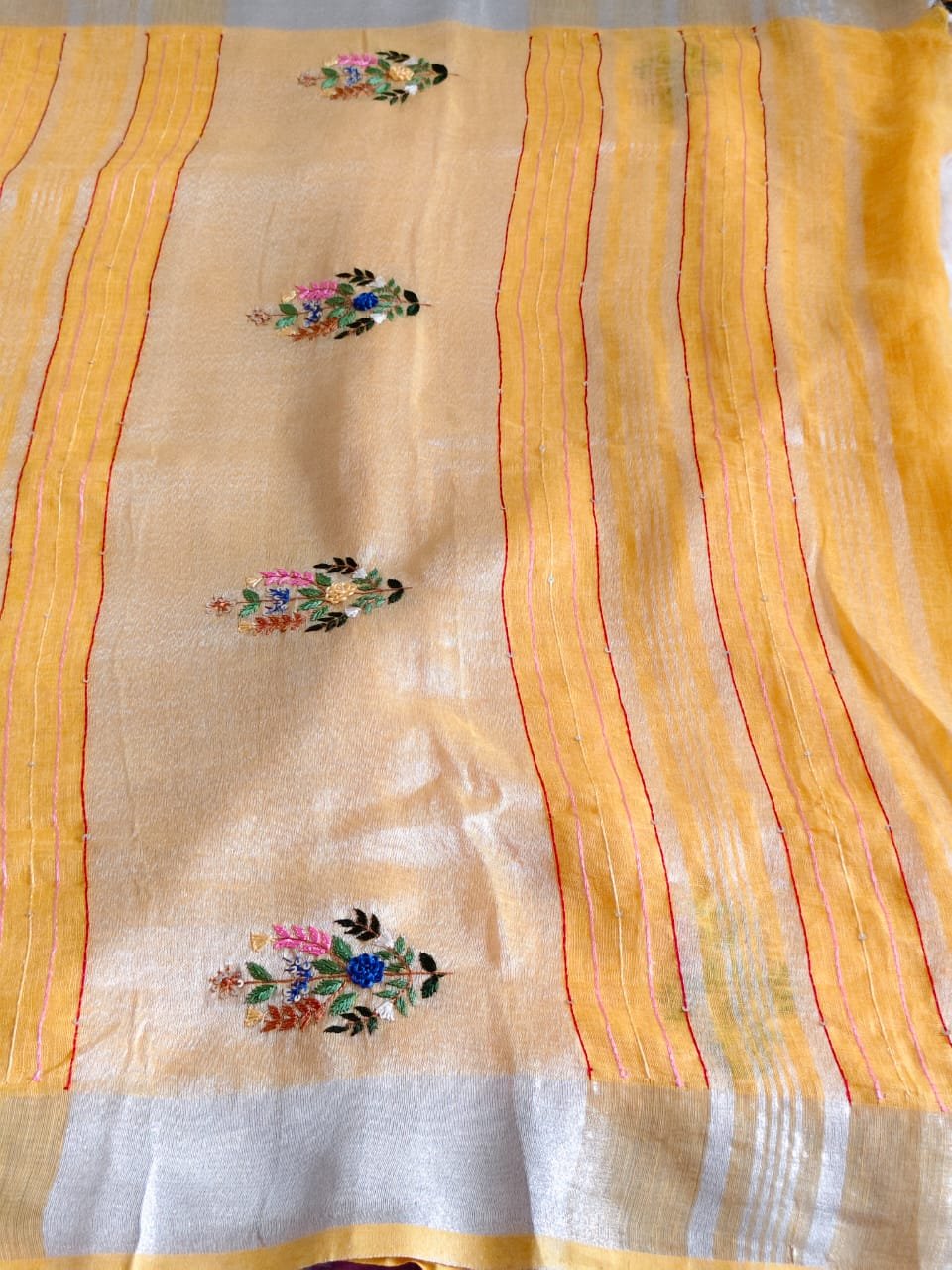 Border: Silver Zari with Red Thread Lines