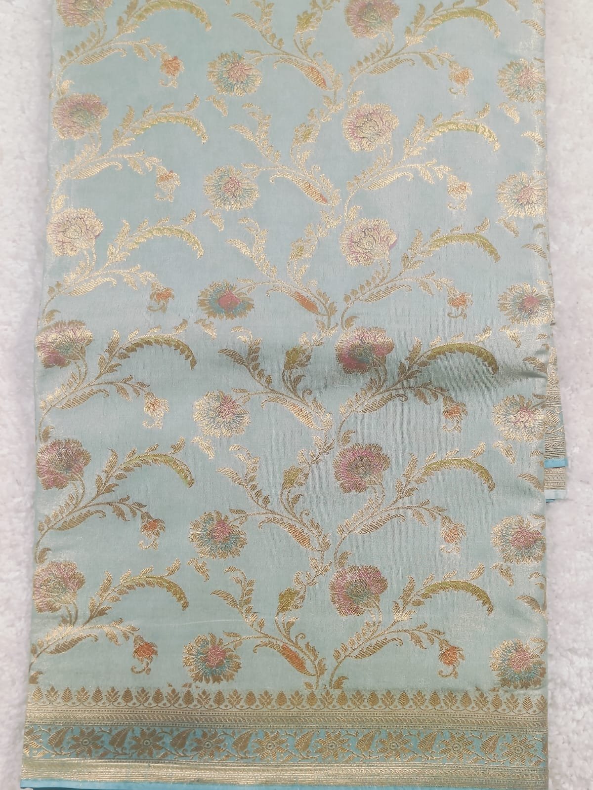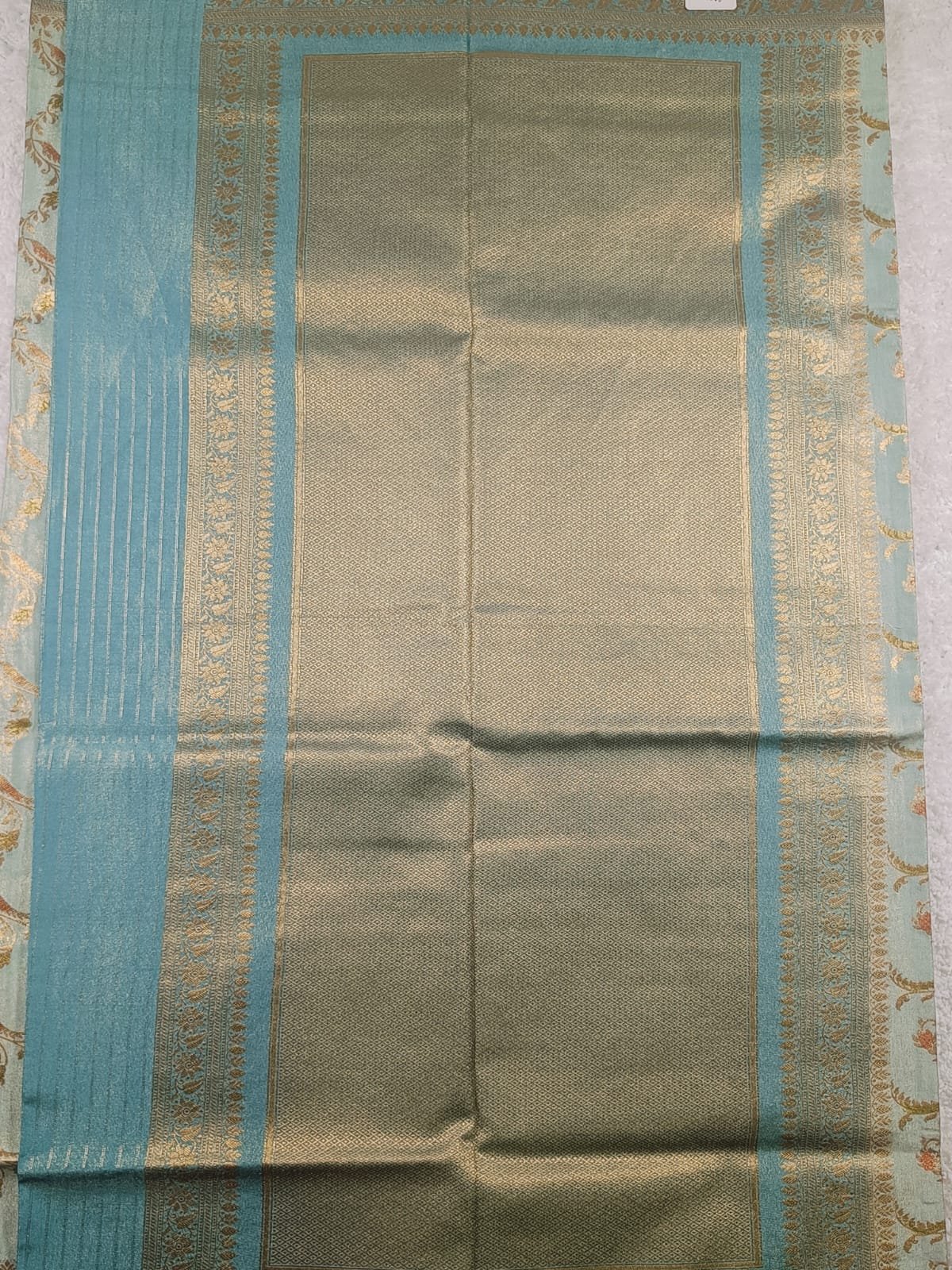 Woven in a soft aqua–mint green (pale teal) shade that exudes freshness and grace.