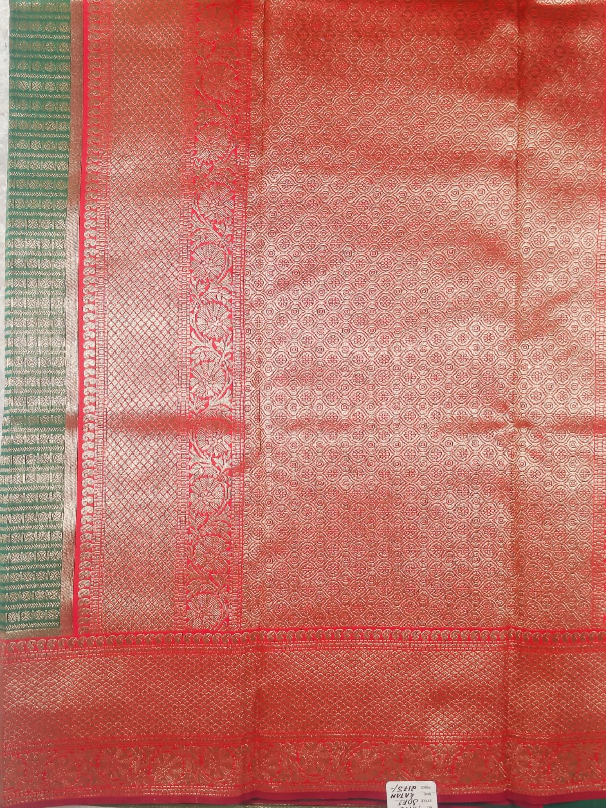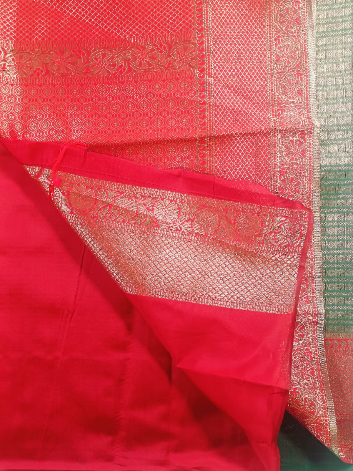 AA90-Green and Red Banaras Soft Katan Silk Saree