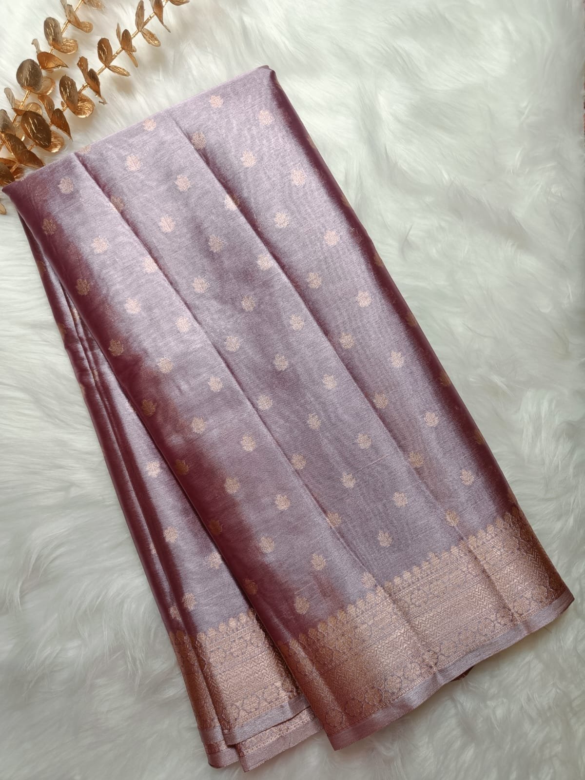 • Color: Mauve Pink with Golden Zari Weave