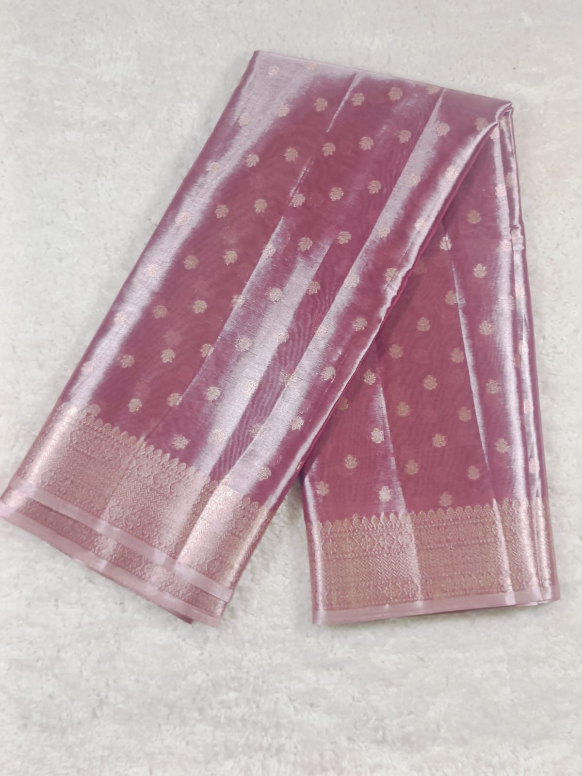 AA83-Elegant Mauve Pink Diamond Tissue Saree